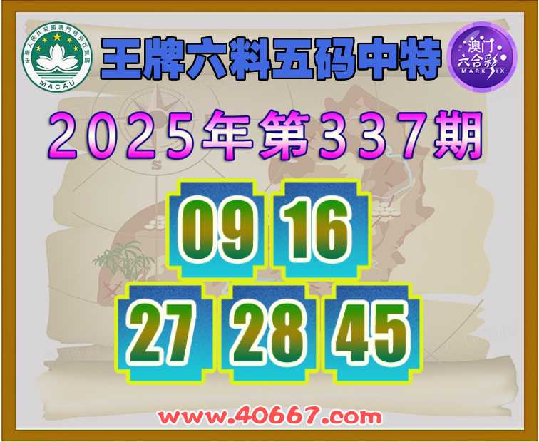 337期:『王牌六料』 ♣️五码中特♣️【09.16.27.28.45】开:09