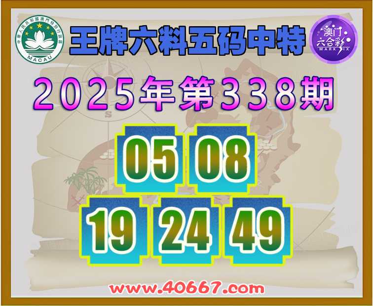 338期:『王牌六料』 ♣️五码中特♣️【05.08.19.24.49】开:08