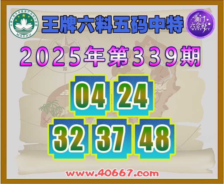339期:『王牌六料』 ♣️五码中特♣️【04.24.32.37.48】开:48