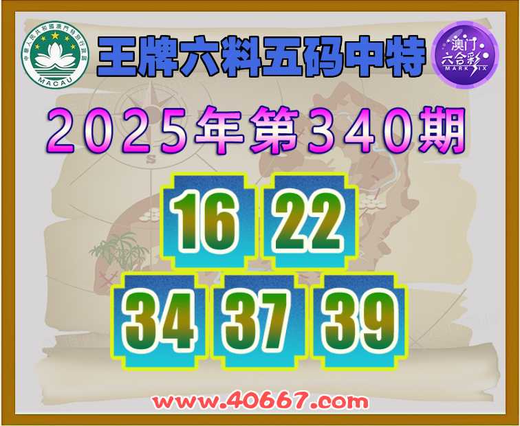 340期:『王牌六料』 ♣️五码中特♣️【16.22.34.37.39】开:16