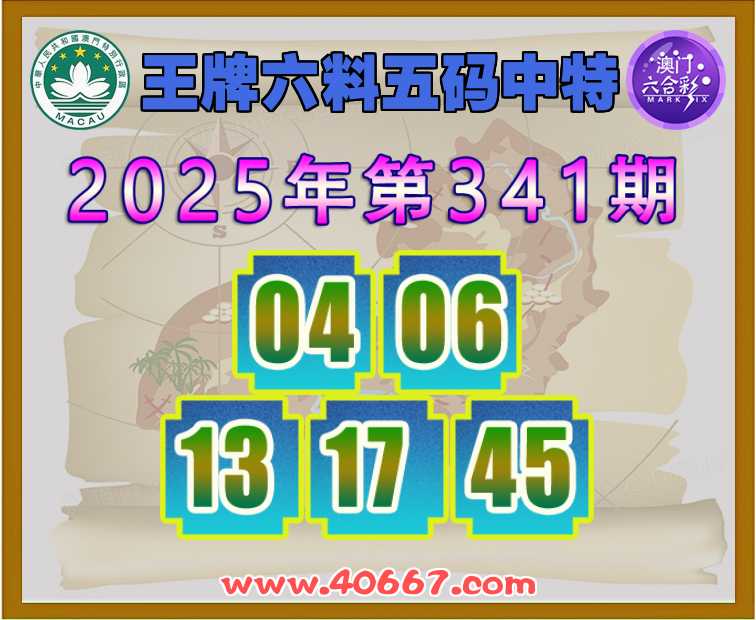 341期:『王牌六料』 ♣️五码中特♣️【04.06.13.17.45】开:06准上榜高手
