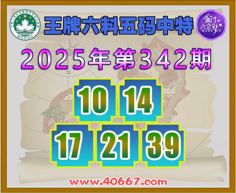 342期:『王牌六料』 ♣️五码中特♣️【10.14.17.21.39】开:00准